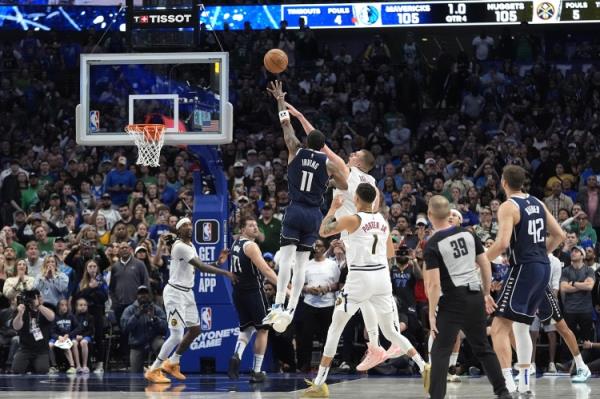近日独行侠官方评选出了球队23-24赛季十佳球第一位——3月18日,独行侠107-105战胜掘金。欧文最后2.8秒左手超远抛投,球神奇命中压哨绝杀掘金。