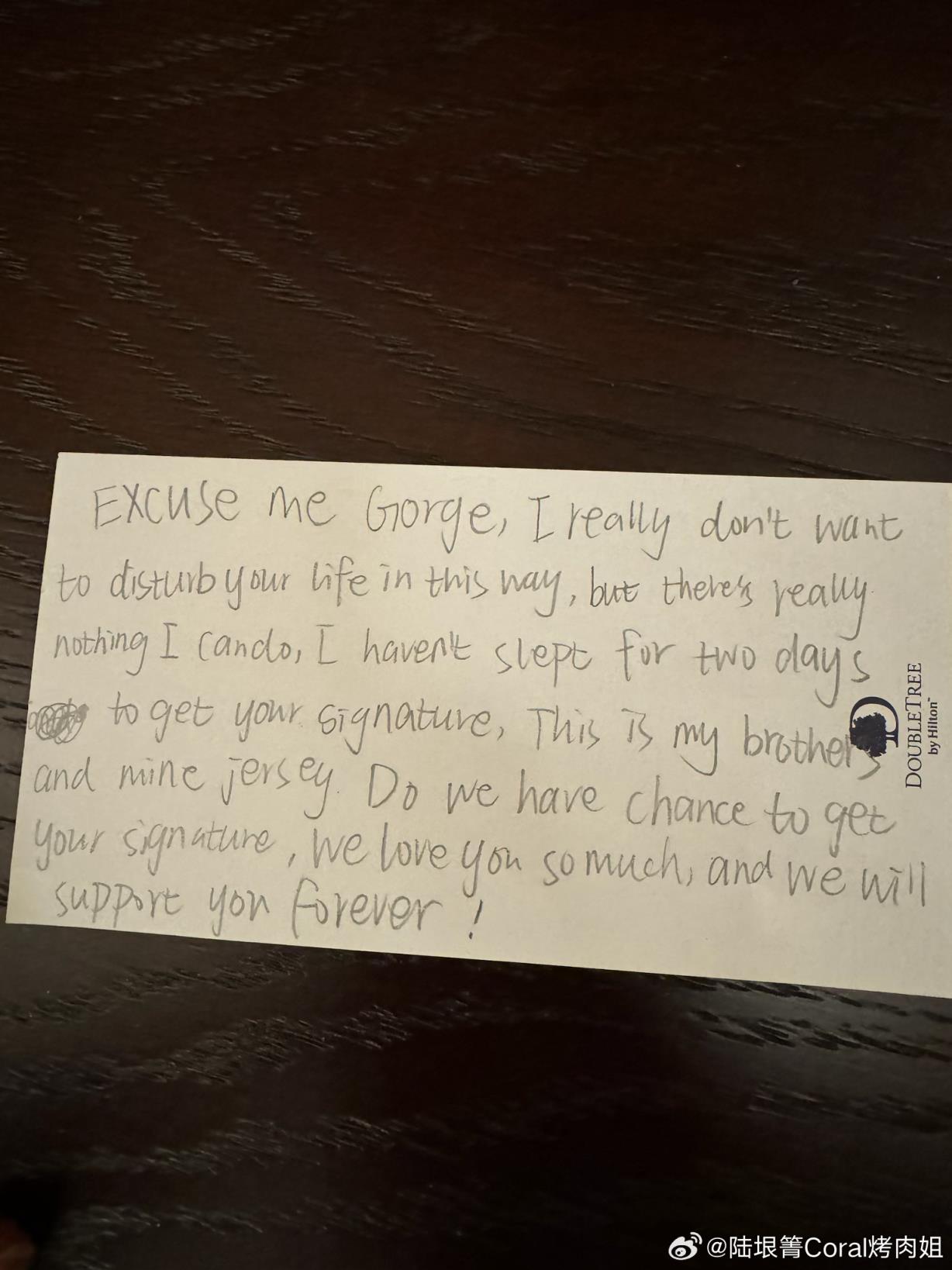 “昨天PG晚上回酒店签了很多球迷,但后面球迷在车库聚集推搡出现安全隐患,喊了几次后无果我不得已把他拉走了,理解球迷喜欢PG,但不知怎么我们包下一层行政楼层后,球迷依然找到了PG的房间,导致PG今早心情全无,这种行为请勿发生。