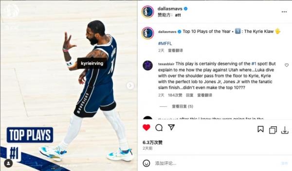 近日独行侠官方评选出了球队23-24赛季十佳球第一位——3月18日,独行侠107-105战胜掘金。欧文最后2.8秒左手超远抛投,球神奇命中压哨绝杀掘金。